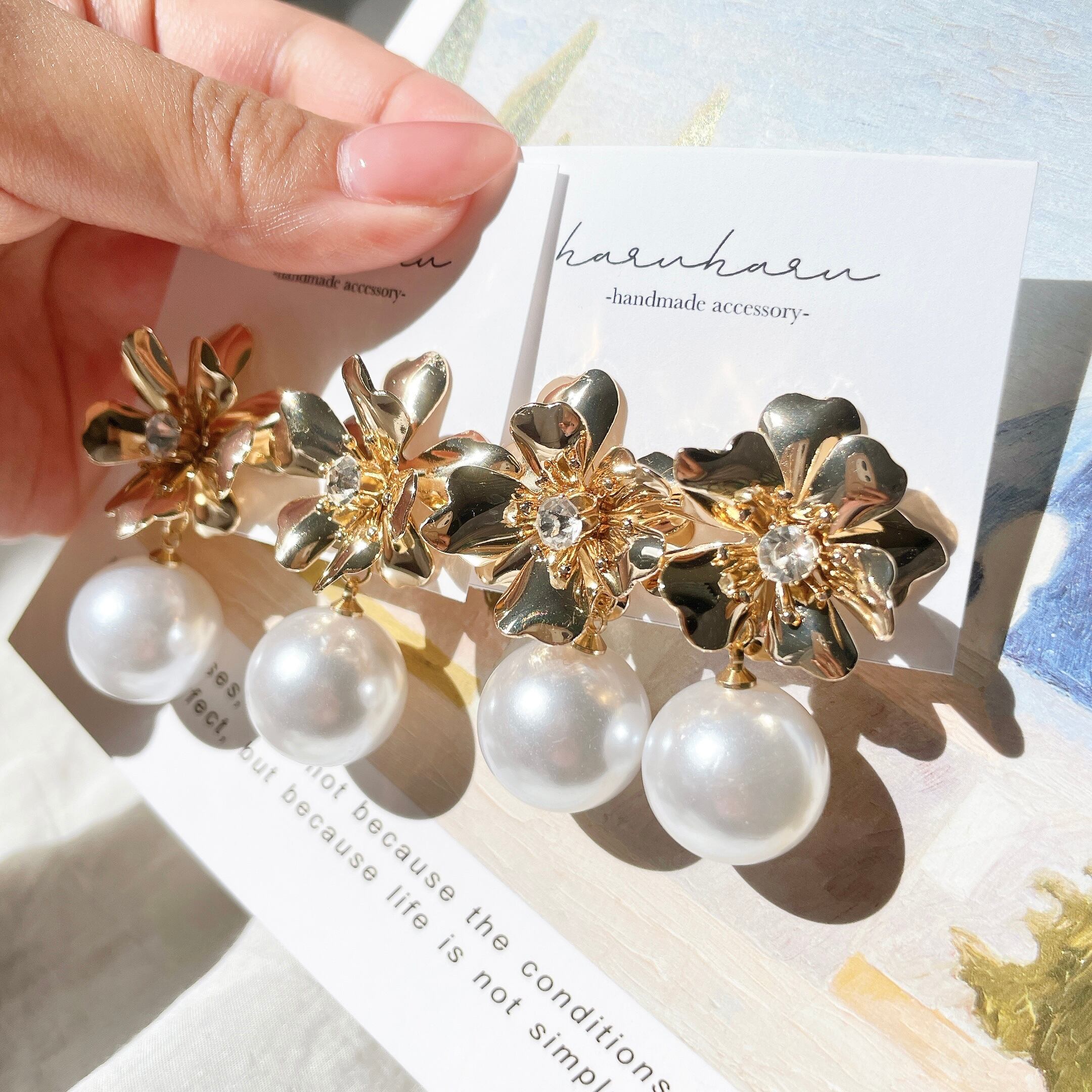 2wayでお使いできるので、お花だけでも、お写真のように大粒パールを下に着けたデザインでもご利用出来ます!